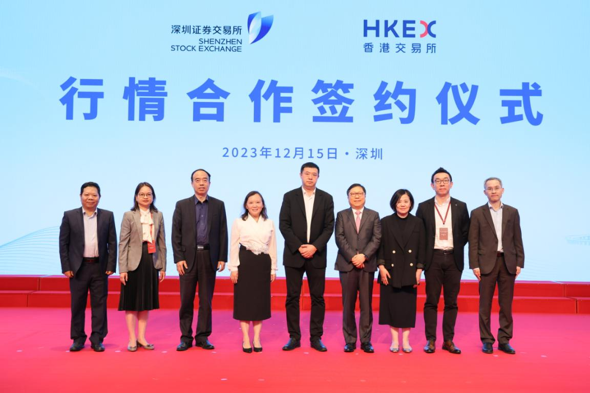 12月15日,在大灣區(qū)交易所科技大會主會場,深交所與港交所隆重推出深港行情合作方案,并舉行合作協(xié)議簽約儀式。深證通陳明忠總經(jīng)理在儀式上代表公司與港交所資訊服務公司簽署合作協(xié)議。